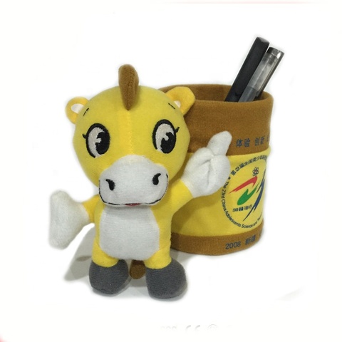 Contenedor de bolígrafo de peluche personalizado, juguete de peluche, lindo animal de Vaca amarilla, contenedor de bolígrafo suave, muñeca de juguete
